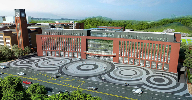 走進廣東外語外貿(mào)大學附設(shè)清遠外國語學校,紅色的外墻成為這所學校的主色調(diào)。廣外清遠外校項目占地面積約232畝,總建筑面積約26萬平方米,學??傮w建設(shè)以“設(shè)計學校就是設(shè)計未來”為理念,配備有室內(nèi)體育館、恒溫游泳館、600人報告廳,室內(nèi)外演出劇場、科創(chuàng)教育空間、活動室、國際田聯(lián)標準運動場等教學設(shè)施,為學生提供優(yōu)質(zhì)、舒適的學習生活環(huán)境。